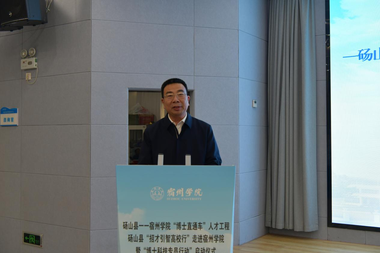 唐明在致辞中表示,宿州学院发展迅猛,在人才培养和科研创新方面取得了显著成果,为地方经济社会发展做出了重要贡献。此次签订“博士科技专员行动”战略合作协议,必将进一步推动砀山县的产业、政策、平台优势与宿州学院的人才、科技、智力优势紧密结合,实现优势互补、合作共赢,全面开启县校合作、创新发展的崭新篇章。