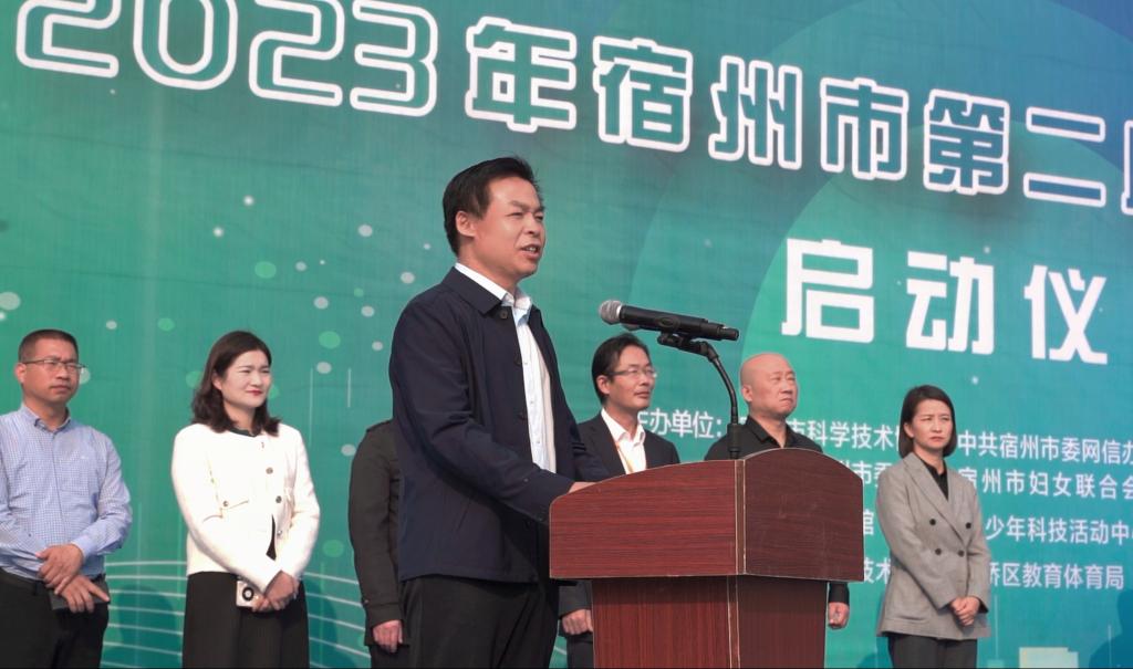 宿州市科学技术协会党组成员、副主席陈鸣宣读《2023年宿州市第二届科普征文大赛征稿启事》。宿州学院文学与传媒学院学生唐佳逸宣读“全民科普倡议书”。