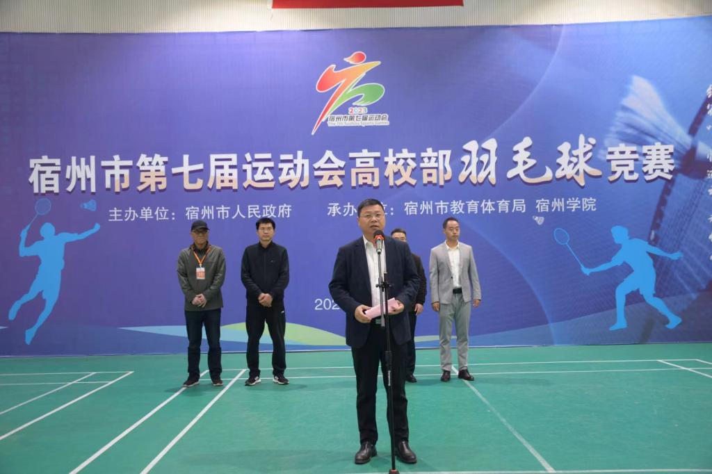 11月9日至11日,宿州市第七届运动会高校部羽毛球比赛在宿州学院体育馆隆重举行,此次高校部比赛由宿州市人民政府主办,宿州学院和宿州市教体局承办。共有宿州学院、皖北卫生职业学院、宿州职业技术学院和宿州航空职业学院4所高等院校,男女8支代表队共45名运动员参加。