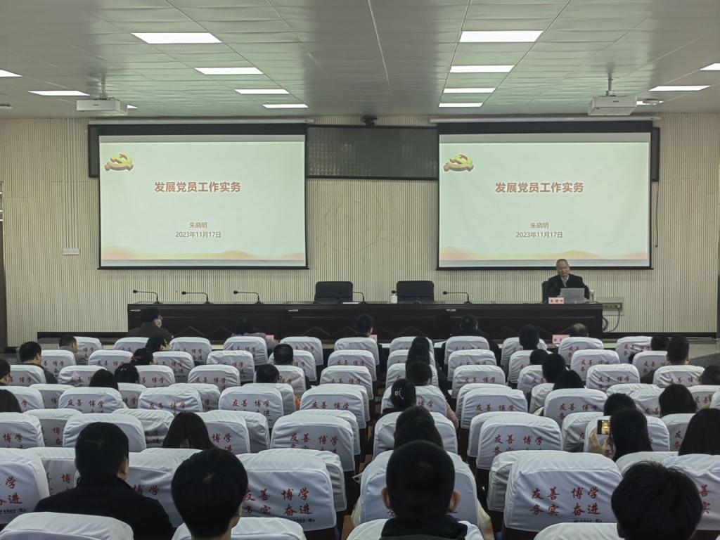 本次培训共分两个专题进行,第一个专题为“高质量做好发展党员工作”,朱晓明结合自身多年党建工作实践,解读了《中国共产党发展党员工作细则》,系统阐述了做好新形势下的发展党员工作的总要求,从入党材料撰写与审核、发展党员的会议组织、各环节注意把握事项等方面讲解了发展党员工作的程序步骤,并就常见的问题进行了重点分析。在第二个专题为“高校基层党组织换届选举工作实务”,朱晓明从重要意义、重要规定、具体条文等三个方面解读了《中国共产党基层组织选举工作条例》,对学校基层党组织换届选举工作作了政策指导,对规范做好基层组织选举工作进行了细致讲解,结合多年工作经验详细讲解了高校党委换届有关工作。