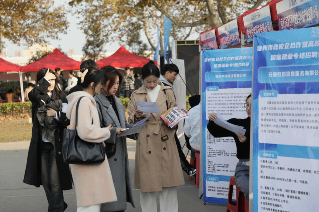 活动当天,还举行了高校毕业生留宿就业专场招聘会,宿州市四县一区158家优质企业进校招聘,提供岗位数1632个,实习岗位1321个,吸引我校及宿州市职业技术学院近1500名毕业生进场求职面试。