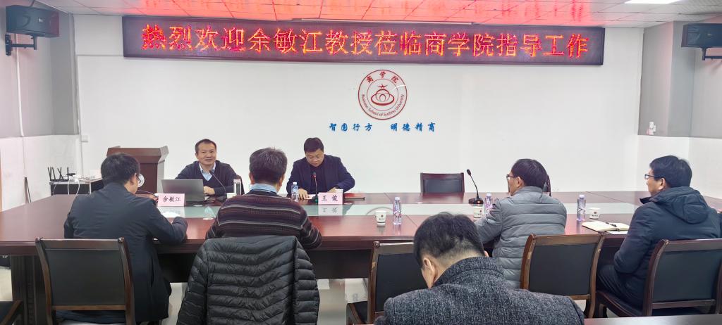王俊对余敏江教授到校讲学表示热烈欢迎,长期以来对我院的关心和支持表示感谢,并向与会教师介绍了余敏江教授的学术简历及研究成果。余敏江教授是管理学博士,同济大学政治与国际关系学院教授、博士生导师,同济大学中外政治制度学科带头人,国家社科基金重大项目首席专家,在《Resources, Conservation and Recycling》(Q1收录)《中国行政管理》《经济社会体制比较》等权威期刊发表学术论文近60篇。