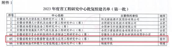 近日,安徽省发改委下发了《安徽省发展改革委关于2023年度省工程研究中心批复组建、验收认定、优化整合结果的通知》,我院申报的“安徽省粮食安全数据智能决策与应用工程研究中心”成功获批组建。