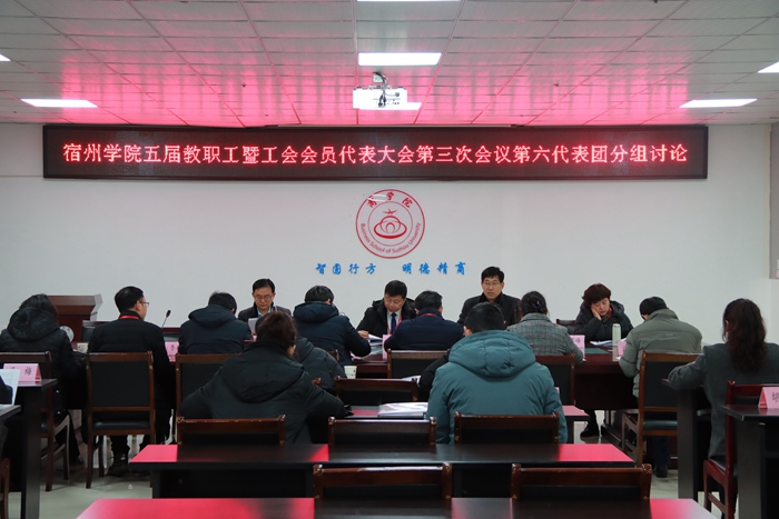 12月13日上午,按照会议日程,宿州学院五届教职工暨工会会员代表大会第三次会议举行分团讨论。在校院领导李红、王俊、杨维志分别到有关代表团参加了讨论,认真听取与会代表意见和建议。各代表团团长主持会议。