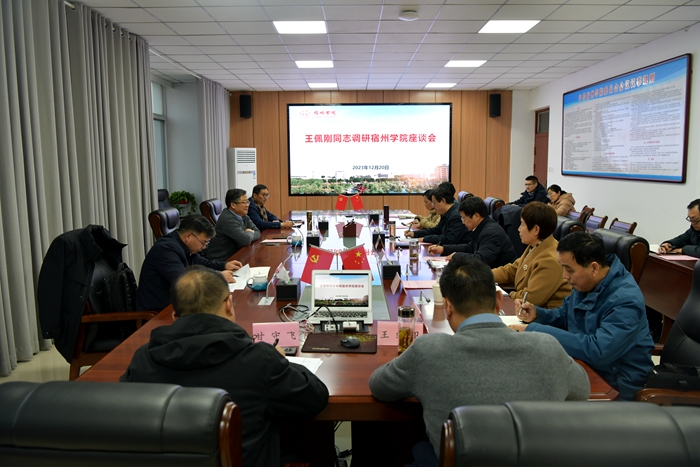 王佩刚对我院各项工作取得的成绩给予充分肯定。他指出,宿州学院立足自身资源,抢抓机遇,社会服务能力不断增强,为安徽教育事业作出了积极贡献。下一步,省教育厅将继续大力支持学院发展,全面支持学院申硕、创大。他希望,学校进一步明确工作目标,压实工作责任,细化工作任务,守好意识形态阵地,深入实施时代新人铸魂工程,提升思政工作的效果,加强人才队伍和师德师风建设,打造特色校园文化,紧紧围绕建设地方性应用型高水平大学的奋斗目标,认真谋划,办出水平,办出特色。