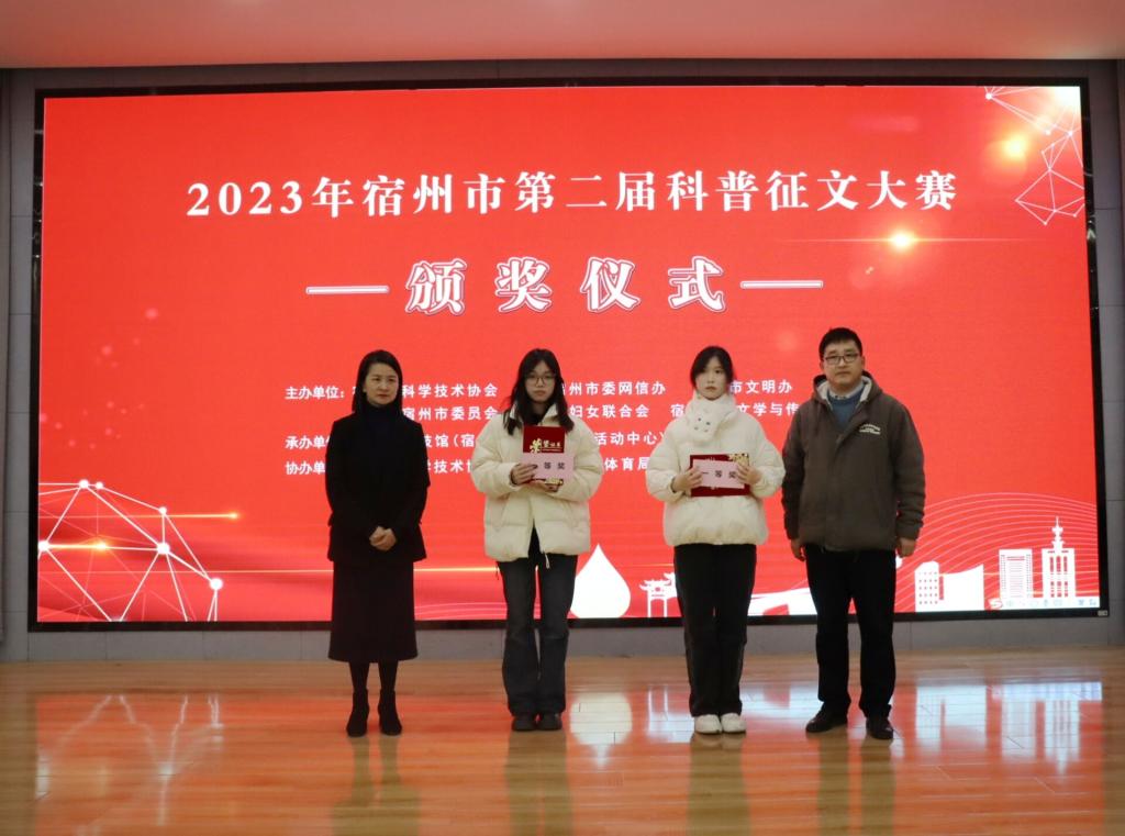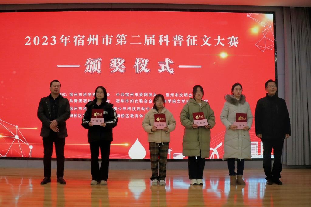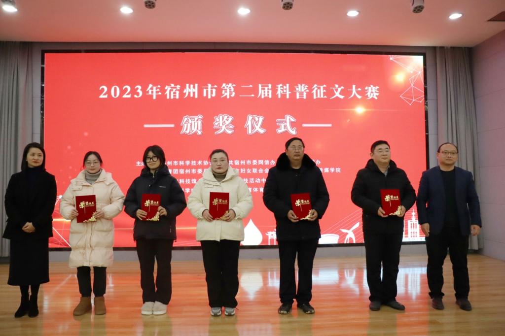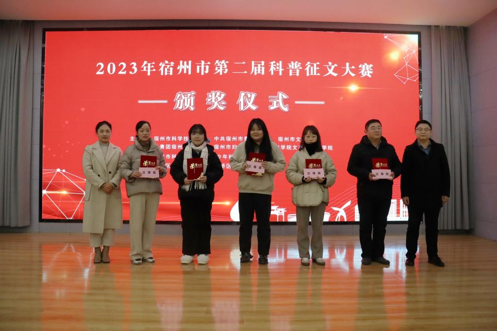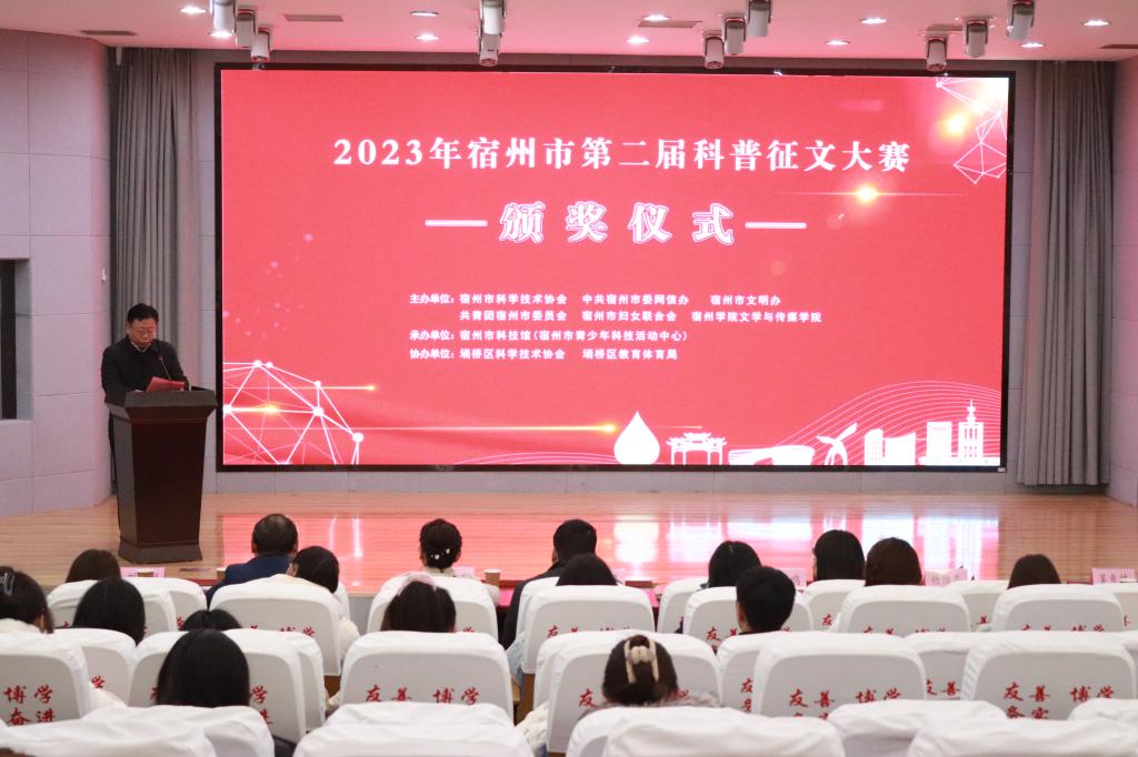 为进一步弘扬科学精神,普及科学知识,提升公众科学素质,推进全民科普,筑牢创新根基,由宿州市科学技术协会、宿州市委网信办、宿州市文明办、共青团宿州市委员会、宿州市妇女联合会、宿州学院文学与传媒学院主办,宿州市科技馆承办,埇桥区科学技术协会、埇桥区教育体育局协办的2023年宿州市第二届科普征文大赛已经完成评审工作。12月27下午在宿州学院招聘大厅举行颁奖仪式。