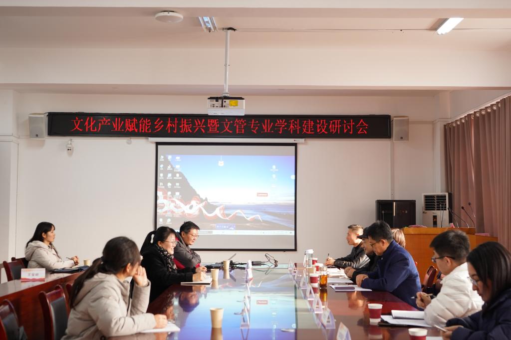 12月28日,文化产业赋能乡村振兴暨文管专业学科建设研讨会在我院教育园区顺利召开。研讨会以推动乡村振兴为宗旨,汇聚相关人才,从文旅融合、非遗传承、数字文创等多角度探讨文化产业管理专业学科建设。院党委委员、副院长杨维志出席会议,安徽师范大学博士生导师秦枫教授、江苏师范大学硕士生导师朱锦程教授等9位专家学者汇聚宿院,文学与传媒学院党政主要负责人、文化产业管理教研室全体教师及部分专业学生共同参加了本次研讨会。