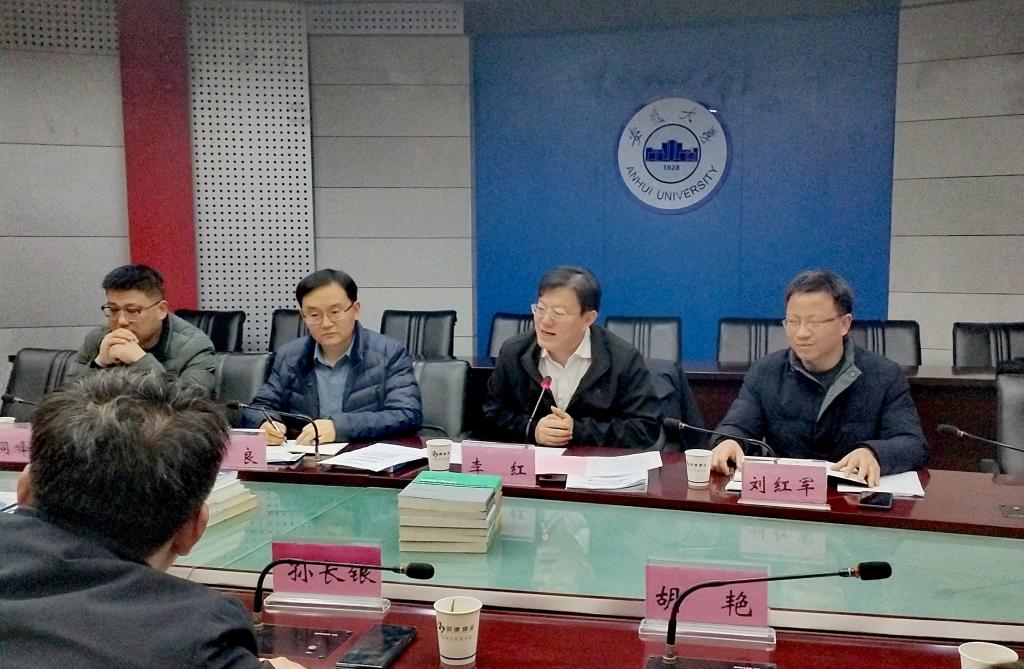 安徽大学党委书记蔡敬民热情接待了李红一行,并召开长三角一体化发展研究座谈会。安徽大学校党委常委、副校长孙长银,安徽大学创新发展战略研究院常务副院长胡艳、安徽大学创新发展战略研究客座研究员黄传霞,安徽大学经济学院副院长杨仁发,宿州学院商学院党委书记肖良,宿州学院商学院党委副书记、院长刘红军等同志参加座谈会。座谈会由安徽大学创新发展战略研究院直属党支部书记何秋生主持。