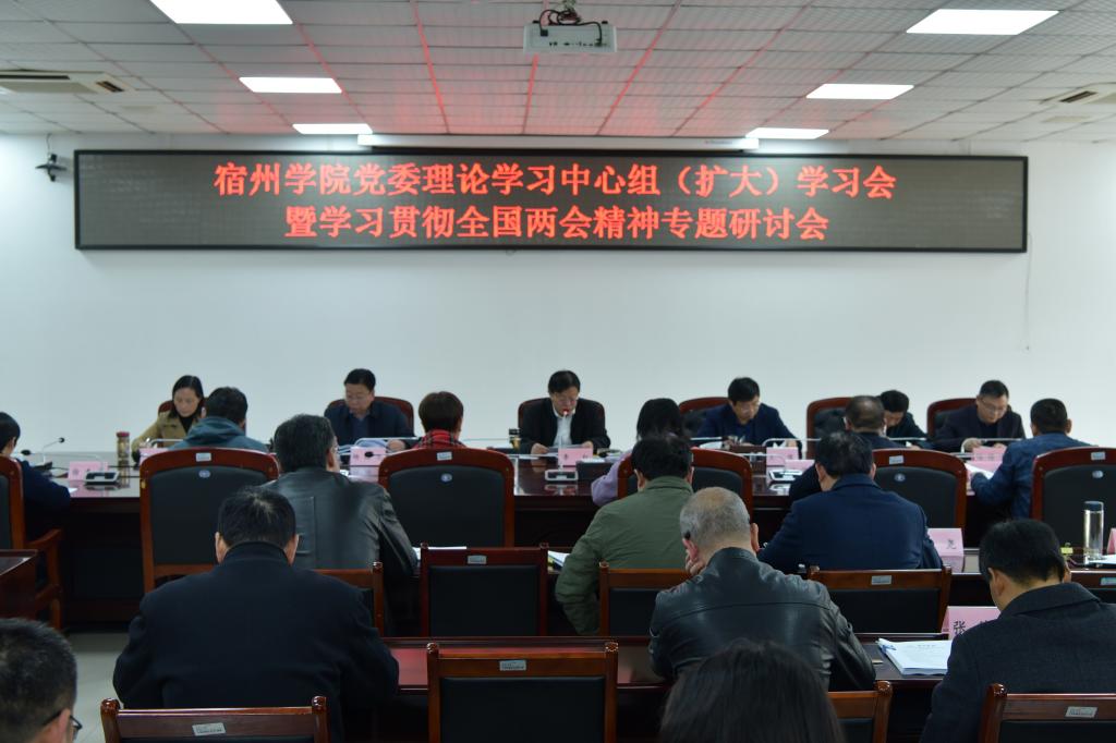 3月26日下午,我院召开党委理论学习中心组(扩大)学习会暨学习贯彻全国两会精神专题研讨会,传达学习习近平总书记在全国两会期间的重要讲话和全国两会精神,传达学习中央相关文件及省委有关会议精神,部署安排学院贯彻落实工作。院党委书记李红主持会议并讲话,院领导王俊、杨维志、王红艳、邢存海、陈得宝出席会议,党委理论学习中心组成员,各职能部门主要负责人、各二级学院党政主要负责人参加会议。