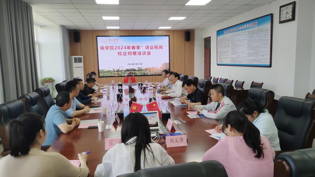 5月14日下午,我院在逸夫楼506会议室召开“访企拓岗”校企对接洽谈会,进一步深化校企合作,助力毕业生充分高质量就业。院党委书记李红出席会议并致辞。浙江澎渤电子商务有限公司、宿州云伙计电子商务有限公司、珍岛信息技术(上海)股份有限公司、宁波先锋中央电暖科技有限公司、江苏盛世康禾生物技术有限公司苏州分公司等五家企业来院洽谈合作。