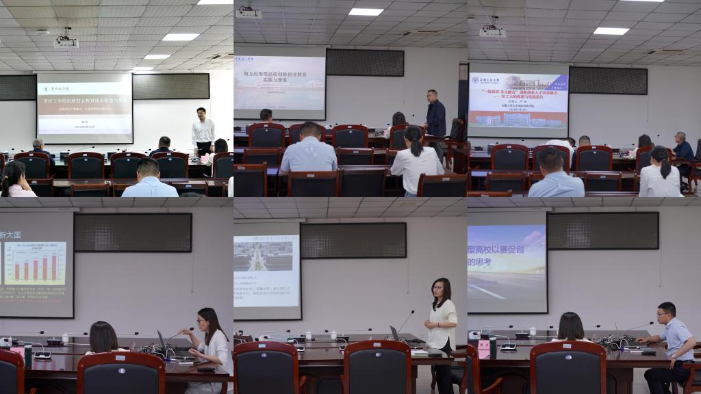 随后,与会专家分别以“常州工学院创新创业教育体系构建与思考”“常熟理工学院创新创业教育实践与探索”“一线双环 多元融合”创新创业人才培养模式——安工大的探索与实践”“科技成果产业化”“城校融合 联盟创新”“关于应用型高校以赛促创的思考”为题做了报告。报告从不同层面、不同角度介绍了各自开展双创教育的特色工作,形成的成功经验,遇到的实际问题,开展的有益探索。报告丰富全面、生动具体、引人深思。