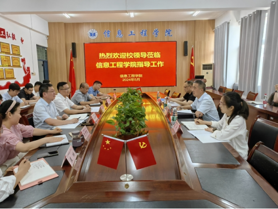 5月20日上午,党委副书记、院长闵杰实地调研信息工程学院,党委学工部部长甘守飞、党委教师工作部副部长赵丹陪同调研,信息工程学院科级以上干部、党支部书记和教师代表参加会议。
