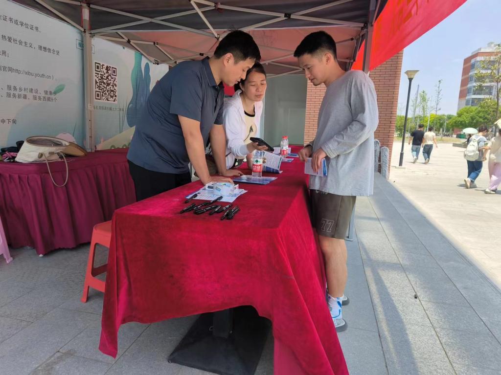为大力宣传档案知识,普及档案法律法规,6月7日,校办档案室在第四食堂门前开展现场咨询活动,院党委书记李红、副院长杨维志到现场指导。