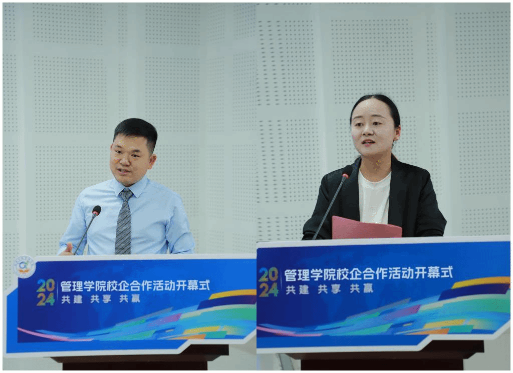 企业代表、杭州御湘湖养生度假酒店总经理助理蒋青林表示,校企合作是新形势下企业发展进步的内在要求和实现双赢的战略举措,期待能与管理学院在专业、课程共建、产学研合作等领域展开新的更高层次的合作。管理学院2010届优秀校友、宝盛控股集团宝盛宾馆常务副总经理潘瑶分享了其在宿州学院求学、在杭州实习、就业及成长的经历,勉励学弟学妹珍惜大学时光,求真知、长本领、增才干,踔厉奋发,砥砺前行。管理学院2021级旅游管理专业程钰婷同学作为在校生代表进行了发言。
