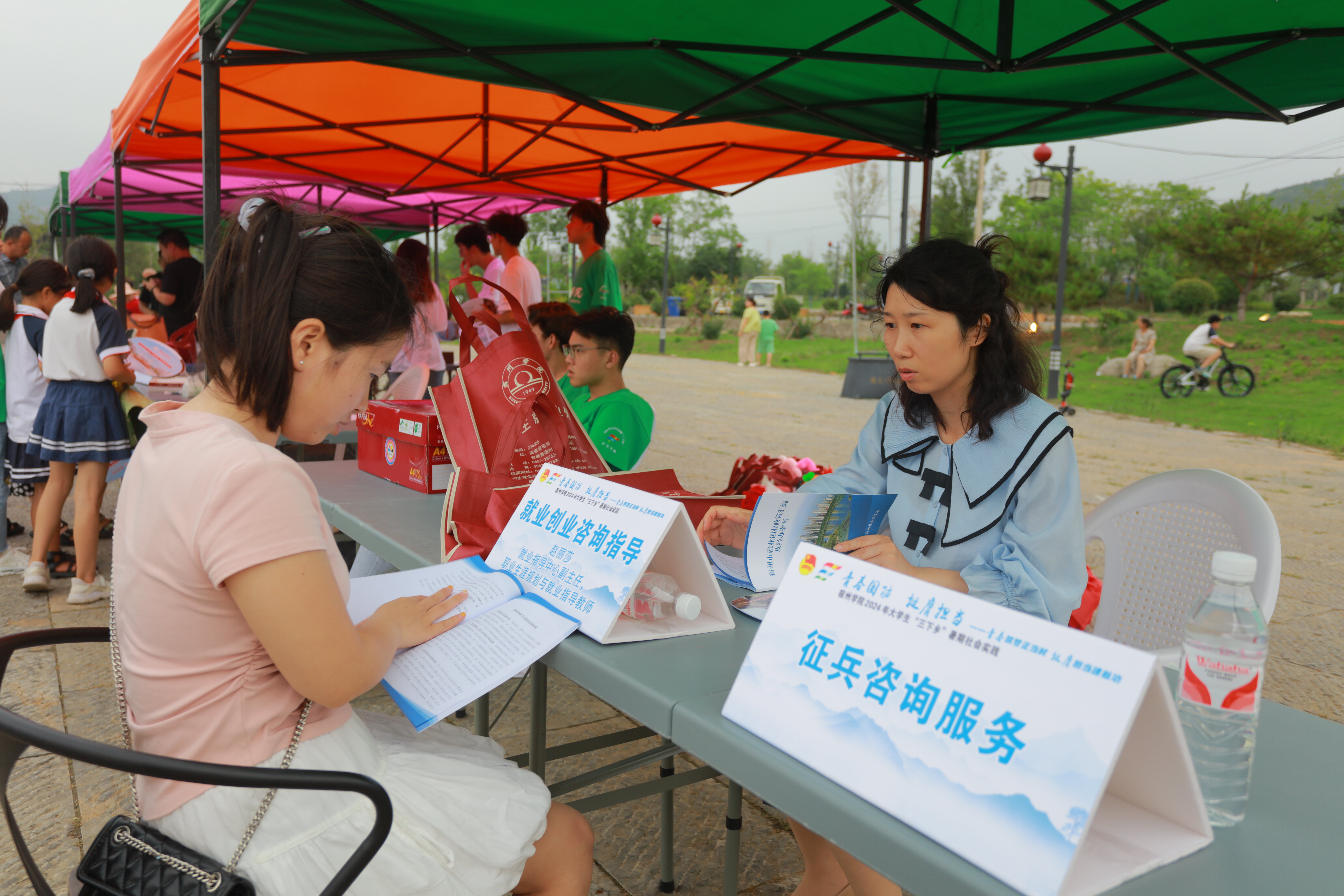 实践团队还在淮北市烈山区榴园文化广场设置了征兵咨询服务台、就业创业咨询指导台、薪火文化展示台等,提供咨询和展示服务。