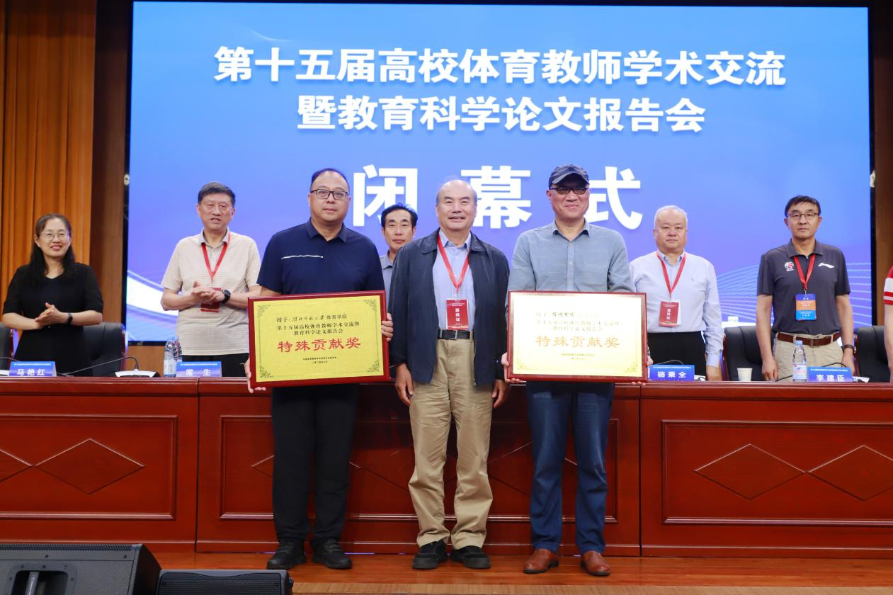 闭幕式上,李鸿江向淮北师范大学体育学院和宿州学院体育学院颁发了“特殊贡献奖”。