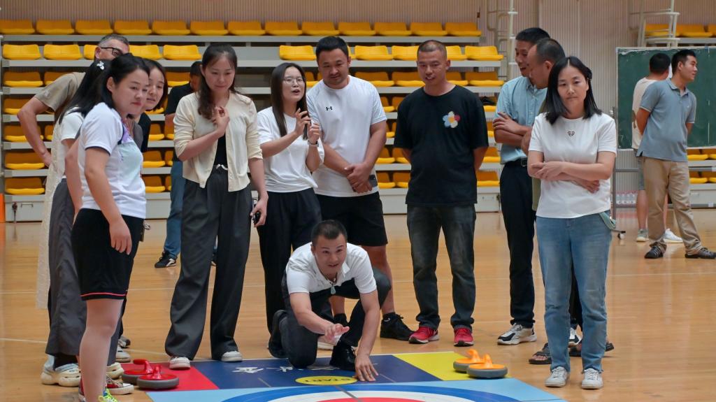 比赛现场,各支队伍斗智斗勇、观察路径、紧盯目标、精心布局,队员们耐心、专注,全身心投入。一次次精准的投壶将比赛不断推入高潮,冰壶的碰撞声与老师们的欢呼声此起彼伏,趣味新颖的形式,更是让参赛者在比赛过程中感受到“旱地冰壶”的乐趣。