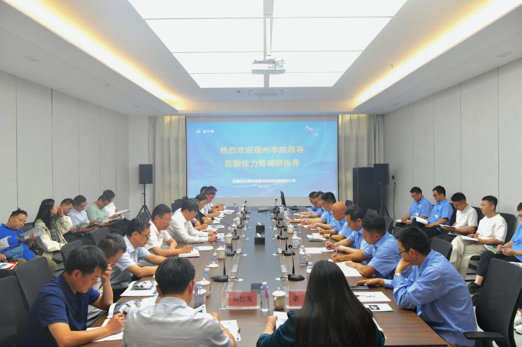 路强介绍了企业的发展历程、技术创新及人才需求等情况。他表示,佳力奇高度重视与宿州学院的合作,期待校企双方充分发挥各自优势,进一步提升合作能级、拓展合作领域、扩大合作成果,实现资源共享、优势互补,携手共赢高质量发展。