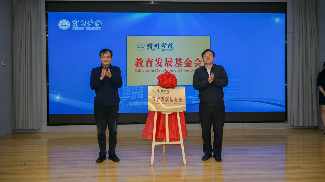 李红、张荣共同为宿州学院教育发展基金会揭牌。