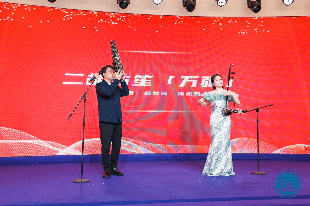 在随后的文艺演出上,我校杭天惠、杨雪莲、盖兆鹏老师带来了女声独唱和民乐演奏节目,唱响了时代旋律、展示了民族风采,获得了高度评价。