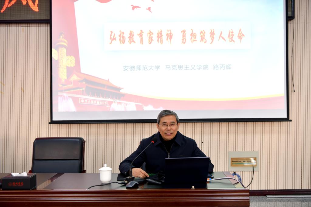 12月25日上午,宿州学院师德师风专题报告会成功举办。党的二十大代表、安徽师范大学马克思主义学院教授、博士生导师路丙辉应邀作《弘扬教育家精神,勇担筑梦人使命》专题报告。报告会由党委常委、副校长杨维志主持,二级学院党政负责人、职能部门负责人、马克思主义学院全体教师、全体辅导员、教师代表、师范专业学生代表共计200余人参会。