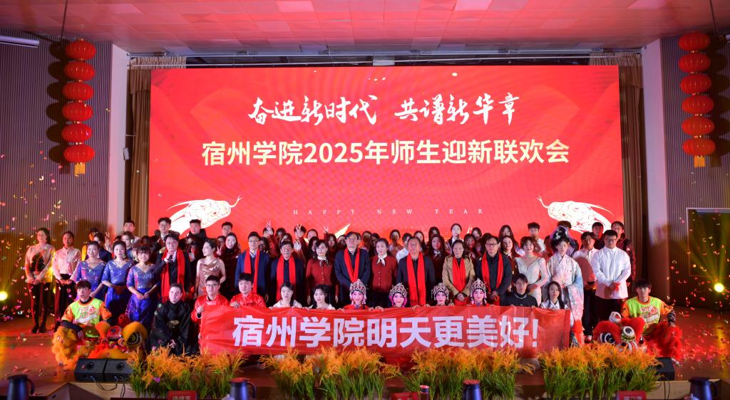 祥龙回首留盛景,金蛇起舞启新程。12月29日下午,宿州学院2025年师生迎新联欢会在教育园区大学生活动中心举行。校领导李红、杨维志、邢存海、王红艳,党委常委、组织部部长张劲松、党委常委、宣传部部长岳尧,各职能部门、各二级学院负责人及师生代表600余人共聚一堂,喜迎2025年的到来。
