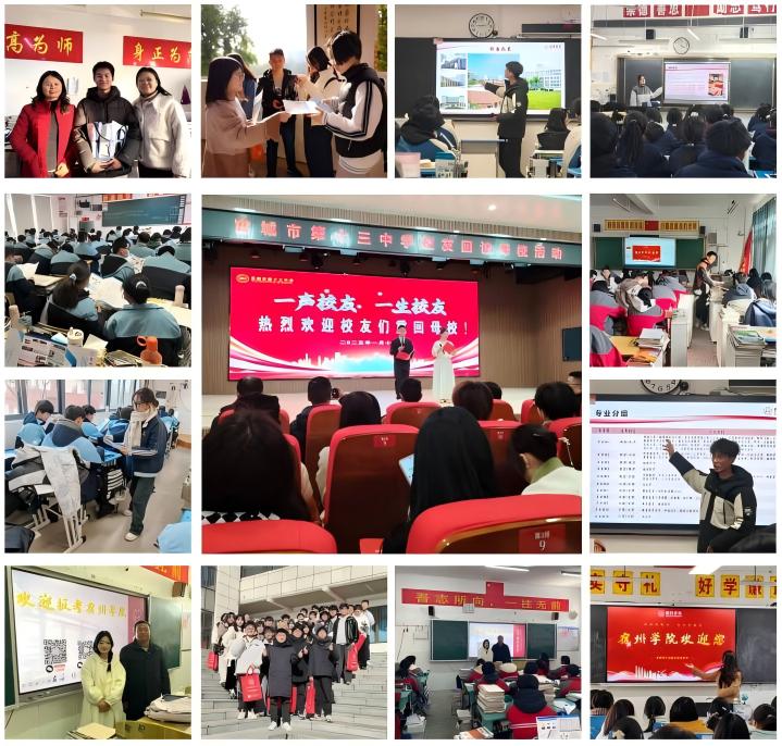 2025年寒假,宿州学院开展了2025年寒假社会实践暨优秀学子回访母校专项活动,共吸引全校14个学院700余名在校生积极参与,回访省内外优质生源中学159所,发放宣传折页、海报等各类招生宣传资料40000余份,让更多师生了解学校的办学成就和特色,提升学校社会知名度和影响力。