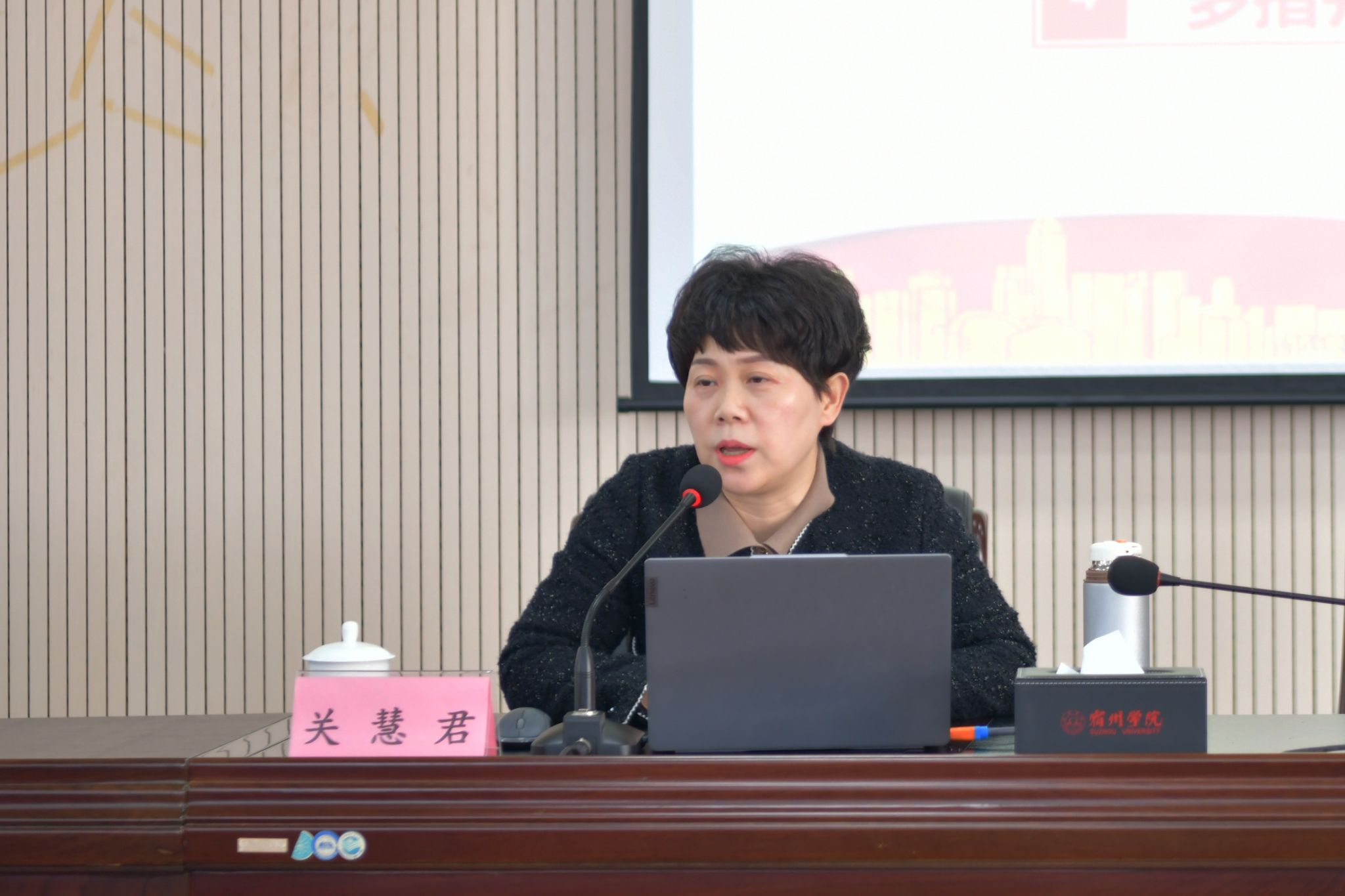 3月6日下午,宿州学院举办全面从严治党专题报告会。省纪委监委第八纪检监察室副主任关慧君应邀作专题报告。校党委书记李红主持会议,校领导闵杰、王俊、杨维志、邢存海、王红艳、陈得宝等出席报告会。