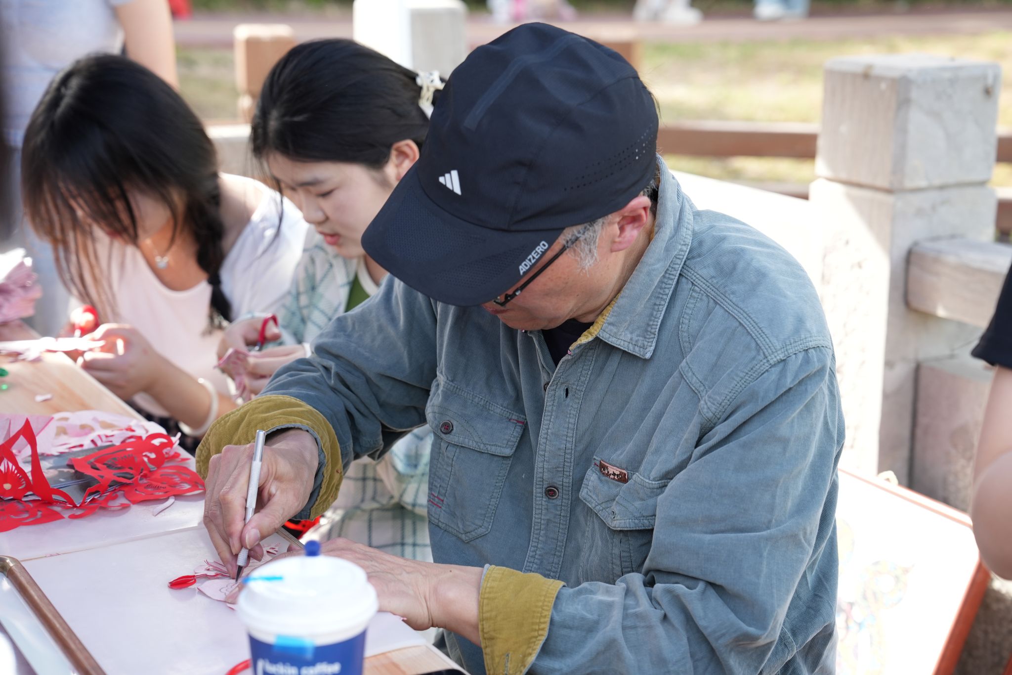 本次民俗文化节为期两天,“以民俗传承燃薪火 青年奋进启新程”为主题,通过精彩纷呈的民俗展演、互动体验、文化展示、文创集市等内容为全校师生搭建起触摸传统文化脉搏的生动舞台。在非遗文化体验区,糖画艺人以勺为笔、以糖作墨,勾勒出栩栩如生的图案;花鸟字笔墨灵动,尽显传统艺术韵味;各色面团在手中化作种种可爱造型;泗州戏悠扬唱腔吸引众人驻足;安徽省工艺美术大师、剪纸非遗传承人、杰出校友周康乐走进校园和师生一起创作,通过一把剪刀,一张纸,将世间的千姿百态和生活中的喜怒哀乐生动展示。