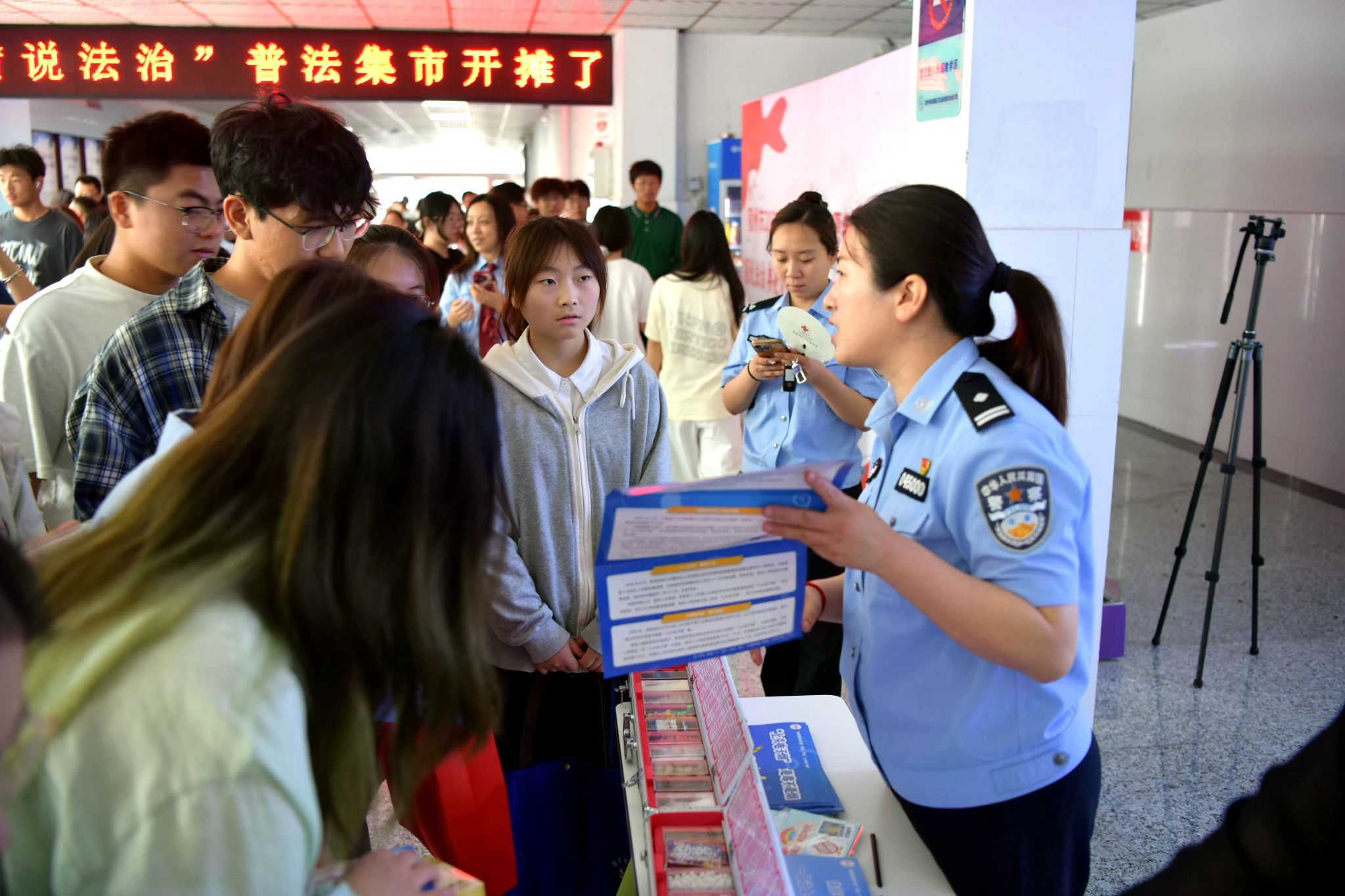 启动仪式后,与会人员共同参观了“宿说法治”普法集市展区。市委政法委、市委保密委、市委网信办、市中院、市检察院、市公安局、市司法局等普法责任单位通过摆放展板、发放宣传资料、现场讲解等方式,开展法治文化基层行普法宣传和民法典主题宣传,教育引导青年学生不断增强法律意识,弘扬法治精神,做尊法学法守法用法的时代青年。为进一步宣传普及民法典知识,活动还设置了趣味十足的“法治大转盘”环节,同学们踊跃参与,积极作答,在游戏中学习法律知识。活动最后,青年普法志愿者们还在签名墙上进行了签名。