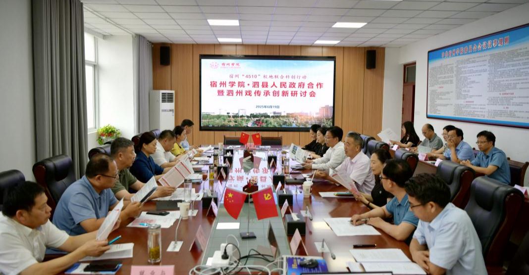 6月19日,宿州学院·泗县人民政府合作暨泗州戏传承创新研讨会在我校举行,校党委副书记、校长闵杰,泗县县委副书记、县长王汝娜,县委副书记邱磊,安徽省非遗保护中心副主任钱桦出席研讨会,共同探讨校地合作,推动泗州戏传承与创新,促进地方文化与文旅经济的高质量发展。校党委常委、副校长杨维志主持会议。