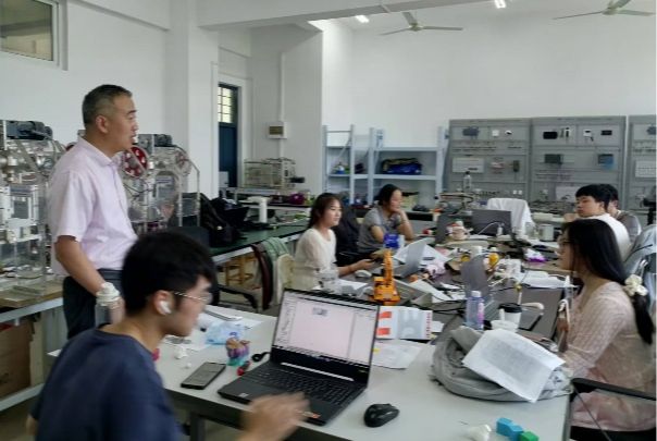 在实验室,闵杰与师生深入交流,详细了解备赛进展情况,并鼓励大家合理利用暑期时间,查缺补漏、潜心备战,在各项竞赛中展现宿院学子的专业素养与拼搏精神,为校争光。