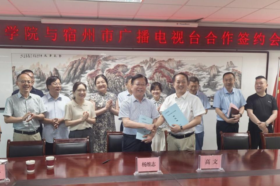 7月11日,校党委常委、副校长杨维志带队赴宿州广播电视台开展校地合作走访交流活动,宿州广播电视台台长高文、副台长聂欣、任卫东、郭卫东等全程陪同,双方就共建实习实训基地、共育新闻人才达成合作。