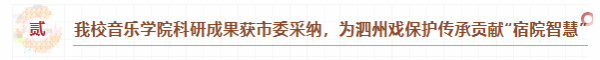近日,我校音乐学院深入贯彻落实习近平总书记关于非物质文化遗产保护的重要指示精神,立足宿州市文化强市建设目标,联合宿州市泗州戏剧团等单位开展专题调研,形成的《关于加强泗州戏保护传承发展助推文化强市建设的几点建议》决策咨询成果获中共宿州市委政研室采纳,为地方戏曲系统性保护与文旅融合发展提供了“宿州方案”。
