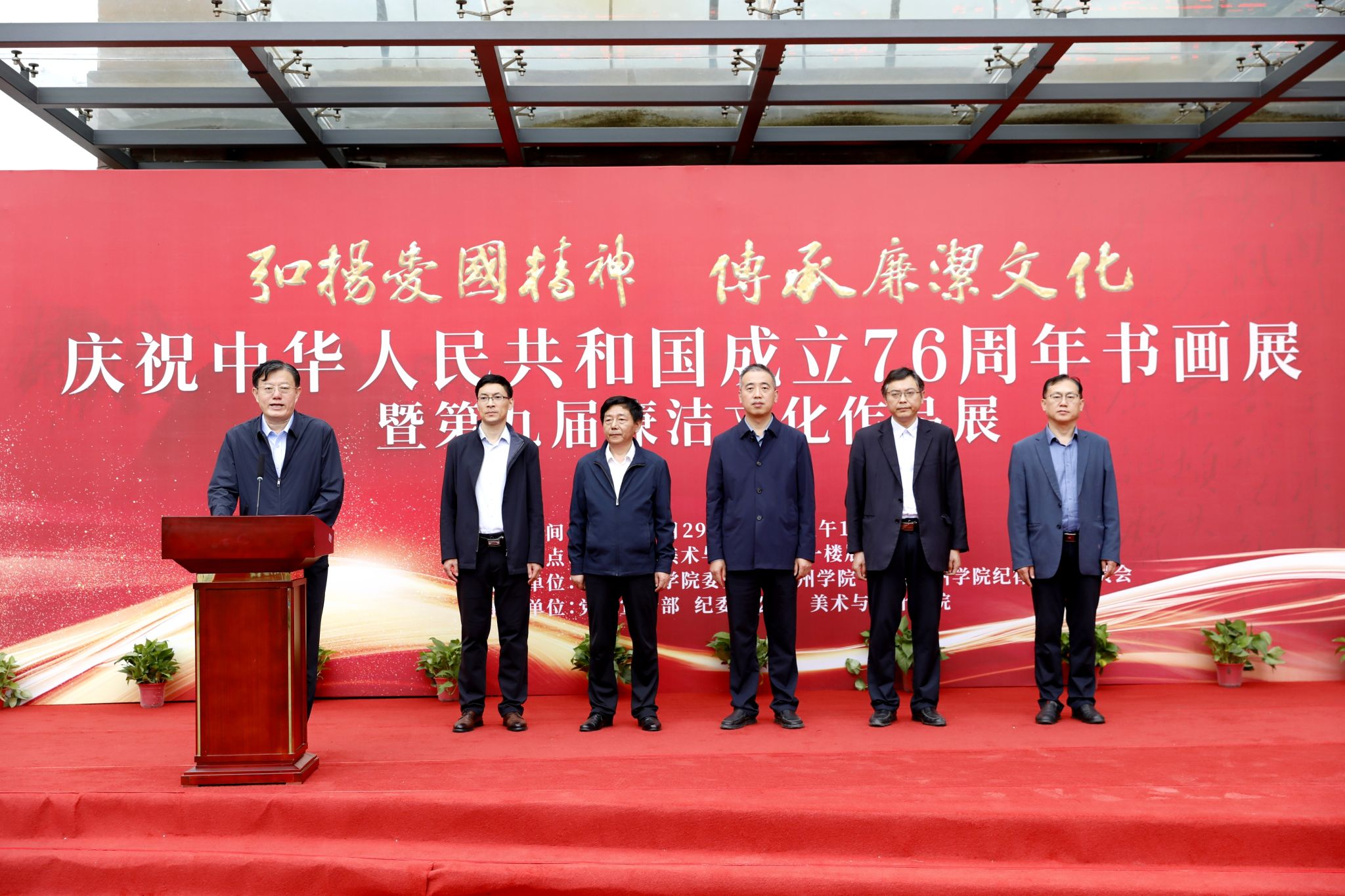 9月28日上午,我校举办庆祝中华人民共和国成立76周年书画展暨第九届廉洁文化作品展。校领导李红、闵杰、邢存海、陈得宝出席书画展开幕式,各职能部门主要负责人、二级学院党政主要负责人、师生代表参加开幕式。