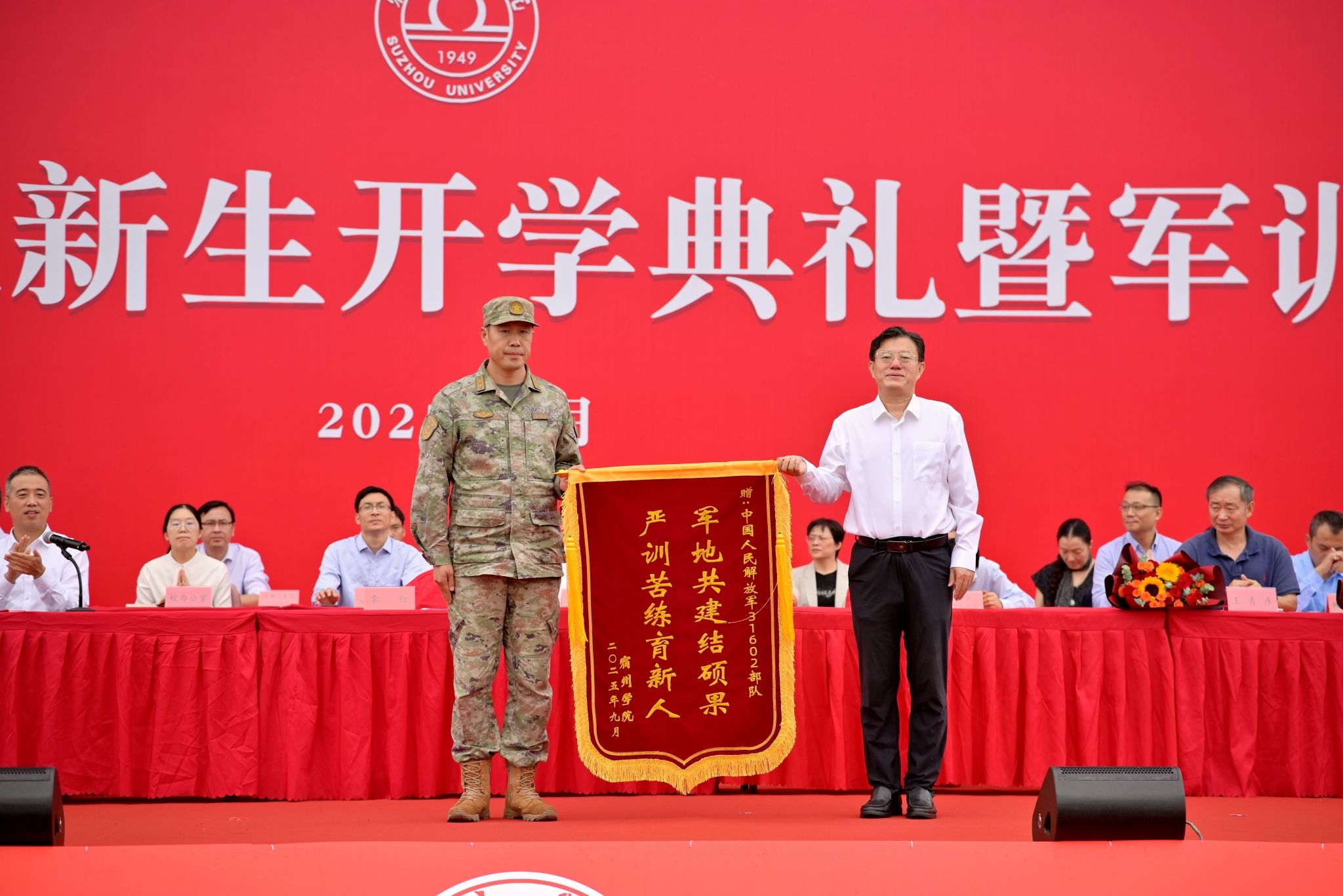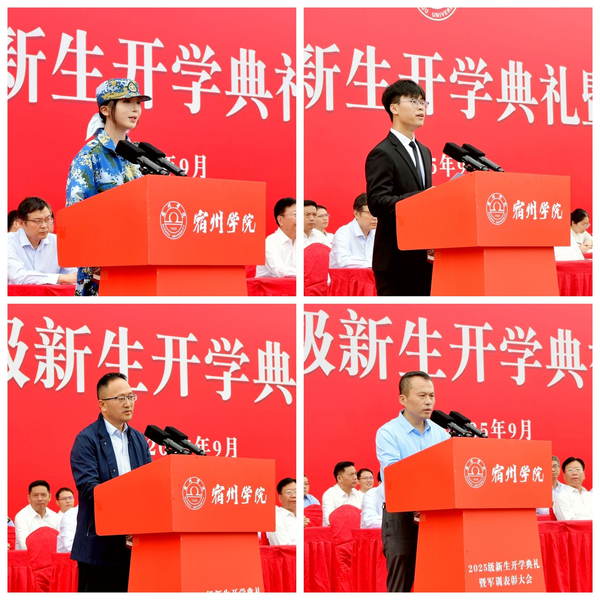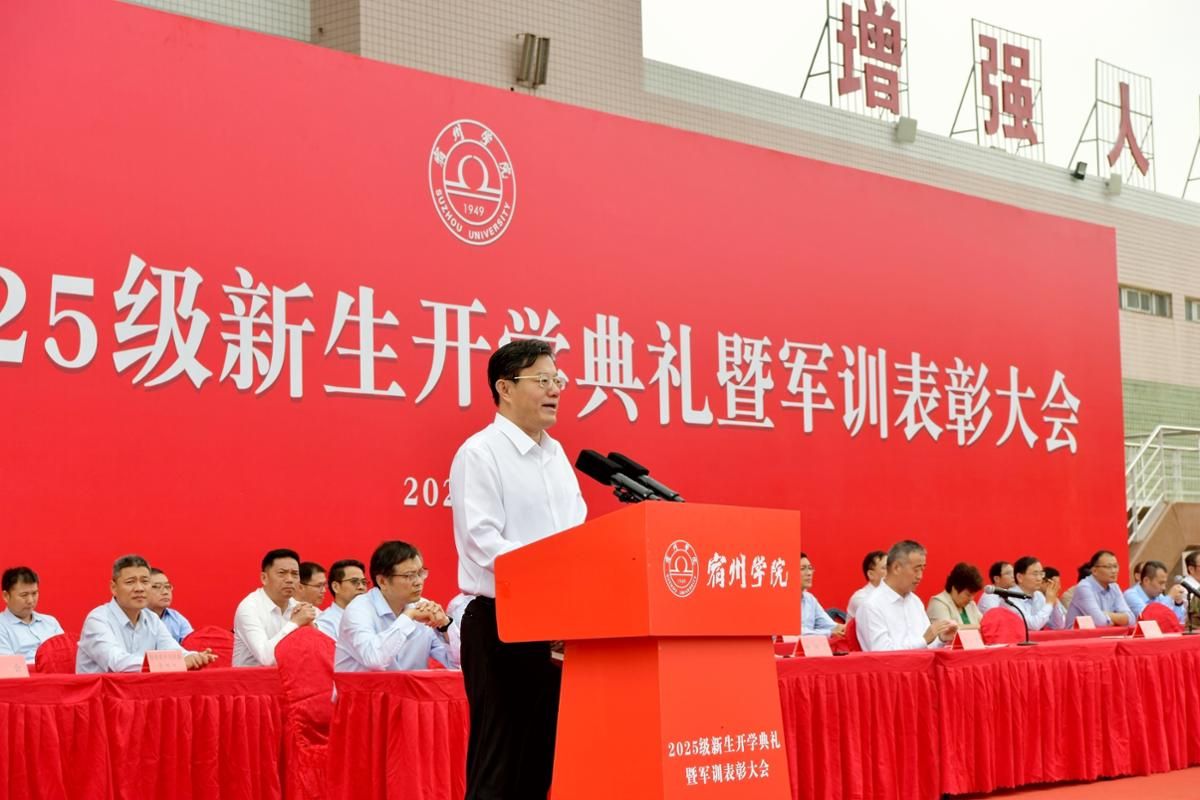 秋风为序启征程,筑梦扬帆谱新章。9月30日上午,宿州学院2025级新生开学典礼暨军训表彰大会在校田径场举行。校领导李红、杨维志、邢存海、陈得宝,中国人民解放军31602部队任春光中校,部分生源学校校领导出席。党委副书记、校长闵杰主持。