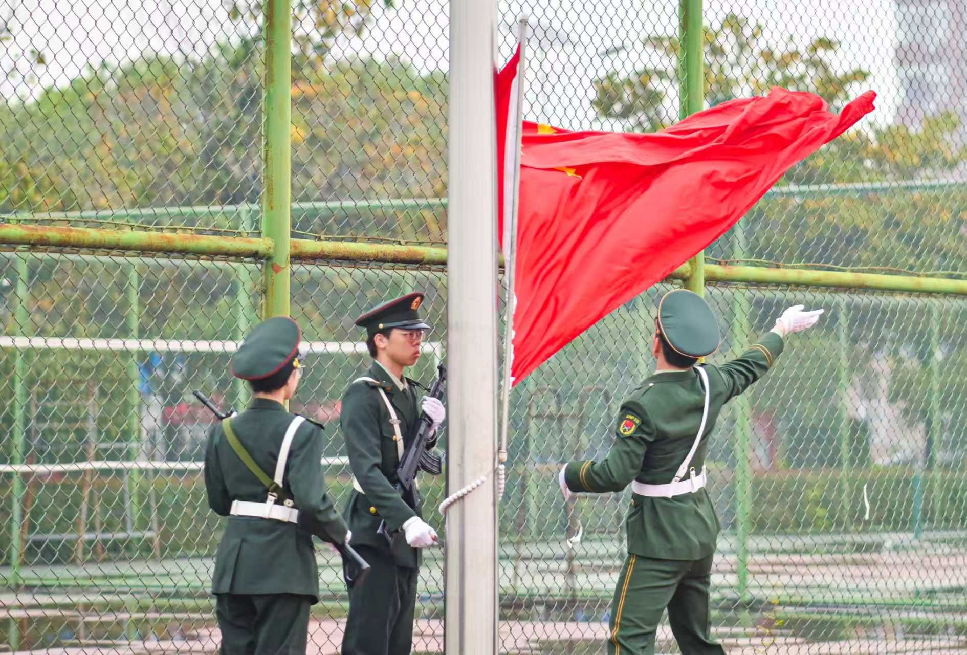 伴随着激昂雄壮的国歌声,鲜艳的五星红旗冉冉升起,全场师生齐唱国歌,行注目礼。在中华人民共和国成立76周年前夕,这场特殊的升旗仪式为新同学们上了一堂生动的爱国主义教育课。