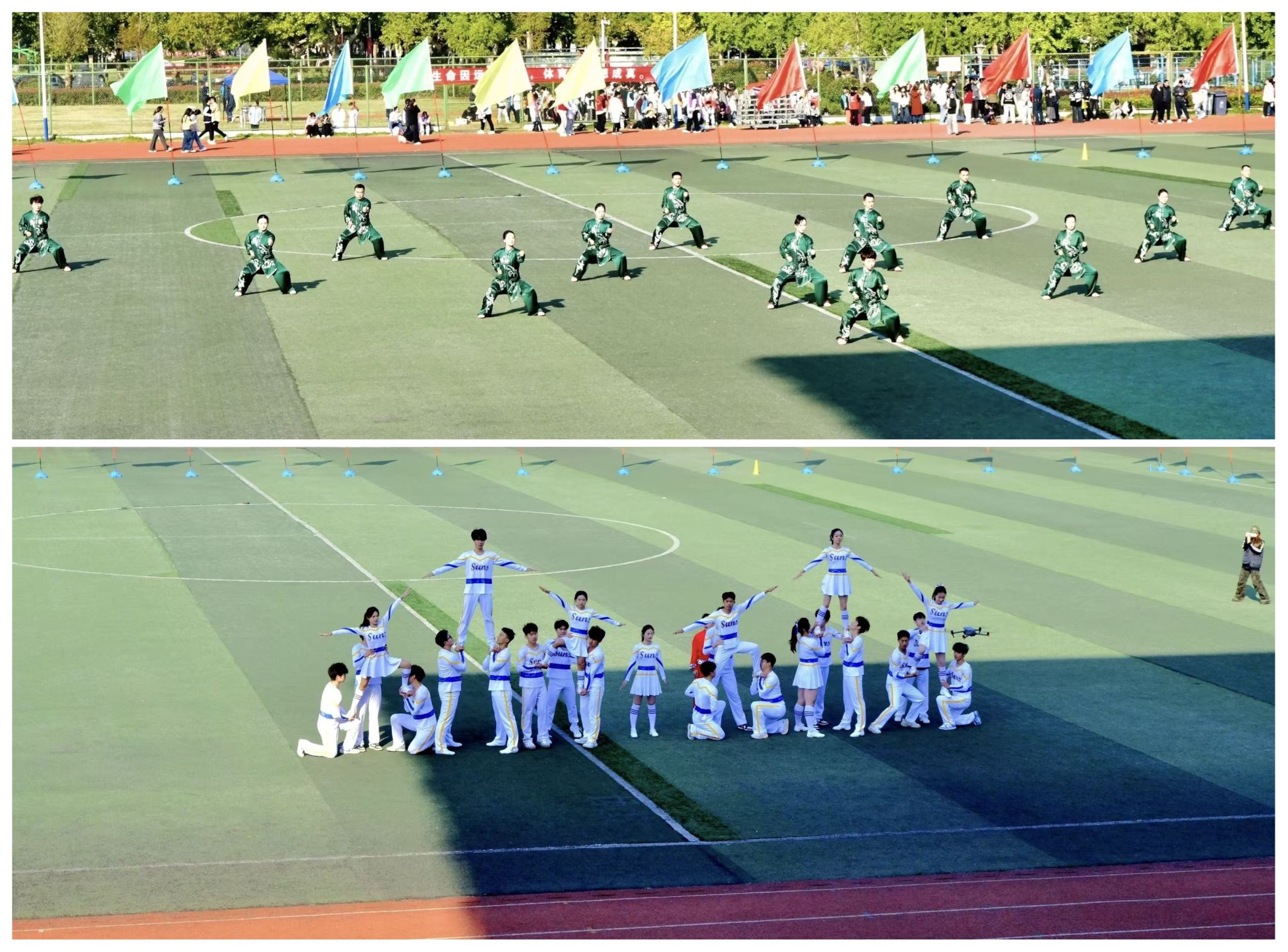 运动员代表、裁判员代表宣誓后,校工会、体育学院和音乐学院师生为开幕式献上了精彩表演。