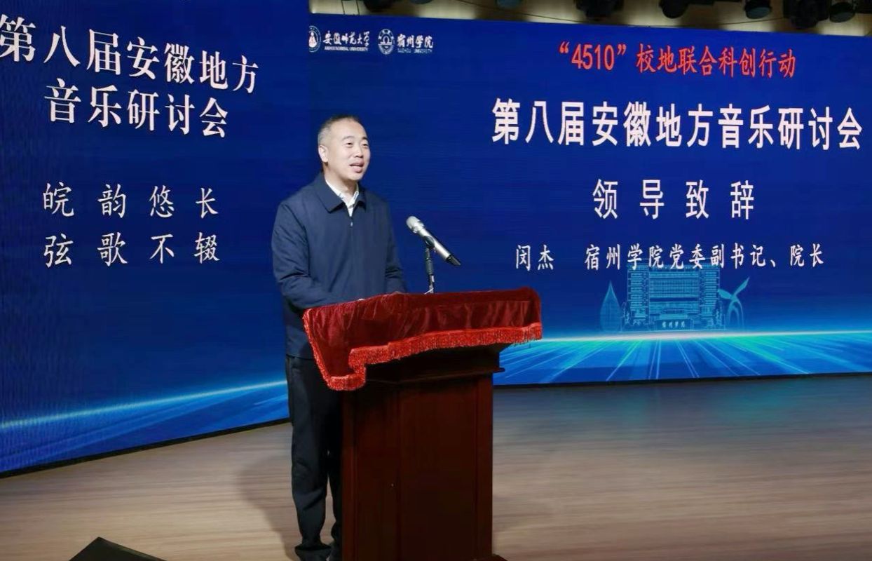 11月15日上午,由宿州学院音乐学院和安徽师范大学音乐学院联合主办的第八届安徽地方音乐研讨会在我校隆重开幕。来自省内外音乐领域的60余位行业专家、高校学者齐聚一堂,共同探讨安徽地方音乐的传承创新与发展路径。校党委副书记、校长闵杰出席研讨会开幕式。