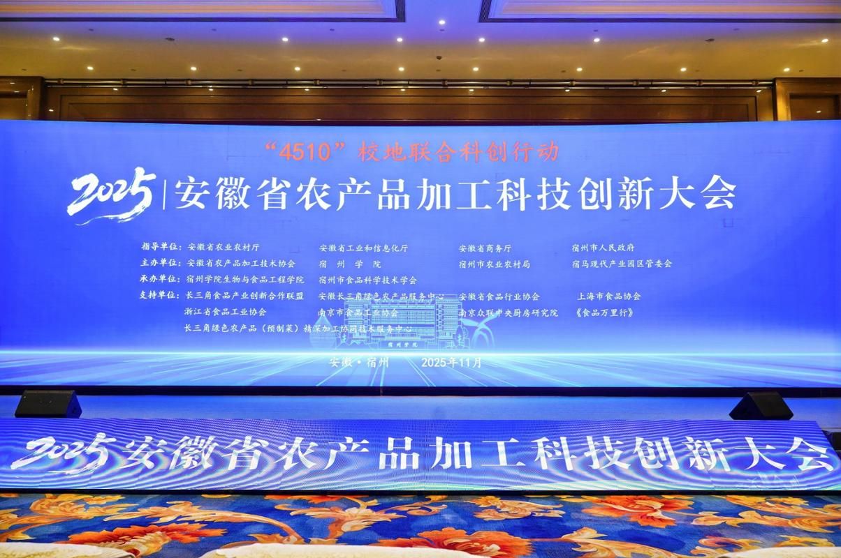 11月14日,2025年安徽省农产品加工科技创新大会在宿州市成功召开。大会由安徽省农产品加工技术协会、宿州学院、宿州市农业农村局、宿马现代产业园区管委会联合主办,宿州学院生物与食品工程学院、宿州市食品科学技术学会承办。宿州学院党委副书记、校长闵杰,宿州市副市长刘博夫,省农业农村厅乡村产业处处长谢俊龙,合肥工业大学、安徽农业大学等省内20多所高校以及江南大学、上海海洋大学等长三角地区高校专家学者、龙头企业代表人士200余人参加大会,共谋农产品加工产业科技升级路径。