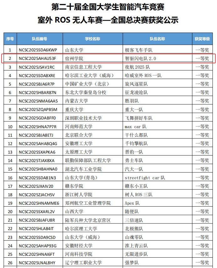 12月26日至28日,全国大学生智能汽车竞赛(室外赛)全国总决赛在山东大学和山东工程职业技术大学举行。我校机械与电子工程学院两支代表队共斩获两个全国一等奖,创造了学校在该项赛事中的历史最佳成绩。