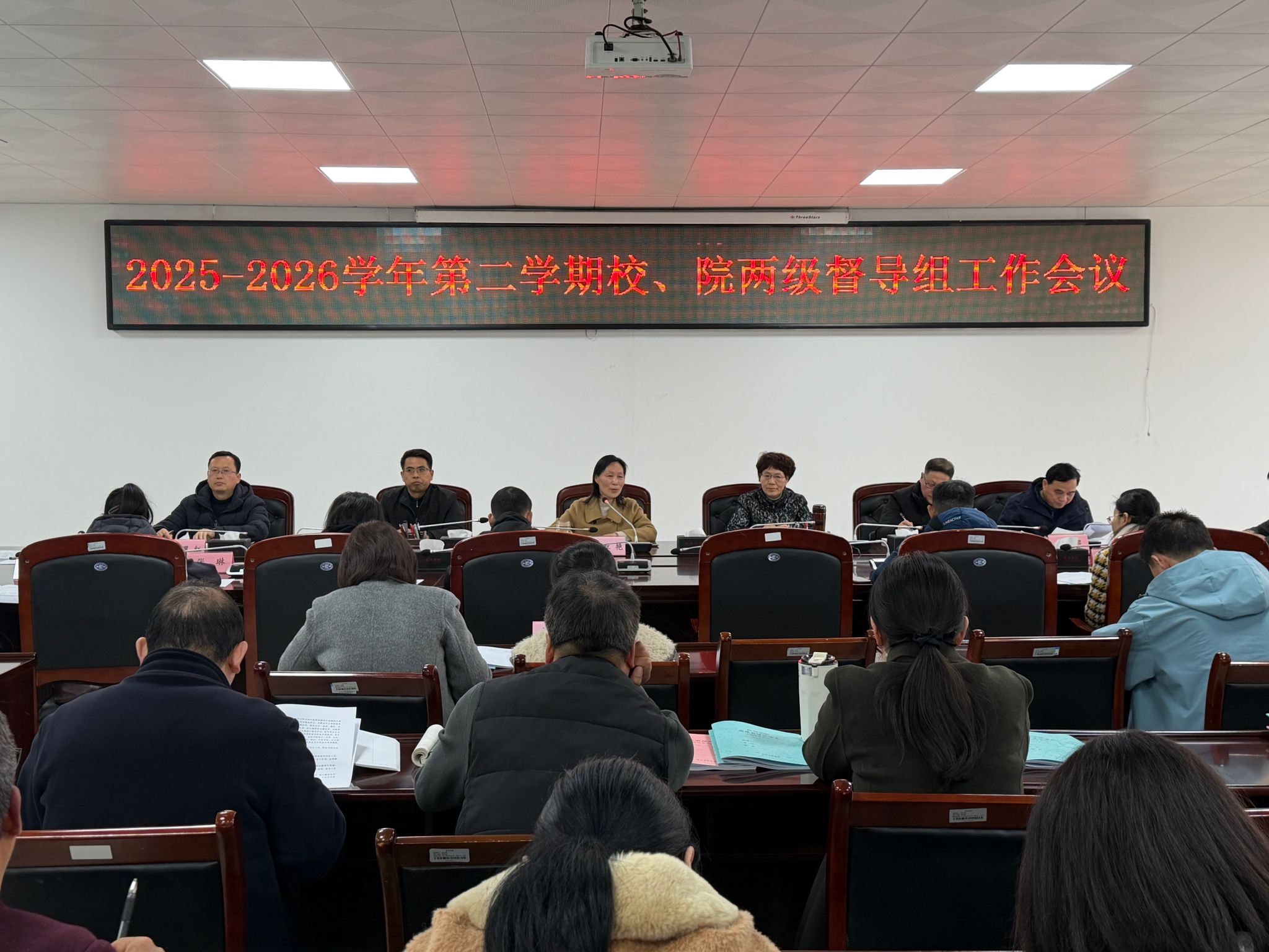 3月20日上午,我校召开2025-2026学年第二学期校、院两级教育教学督导组工作会议。校党委常委、副校长王红艳主持会议。第九届校、院两级教育教学督导组全体成员,教务处处长、各二级学院教学副院长,发展规划处全体人员参会。