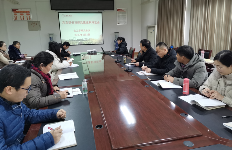 2020年1月2日下午,生工学院在学院会议室召开党支部书记抓党建述职评议会,会议由学院党总支书记赵亮主持,党总支委员、党支部书记、党支部委员及师生代表参加了会议。