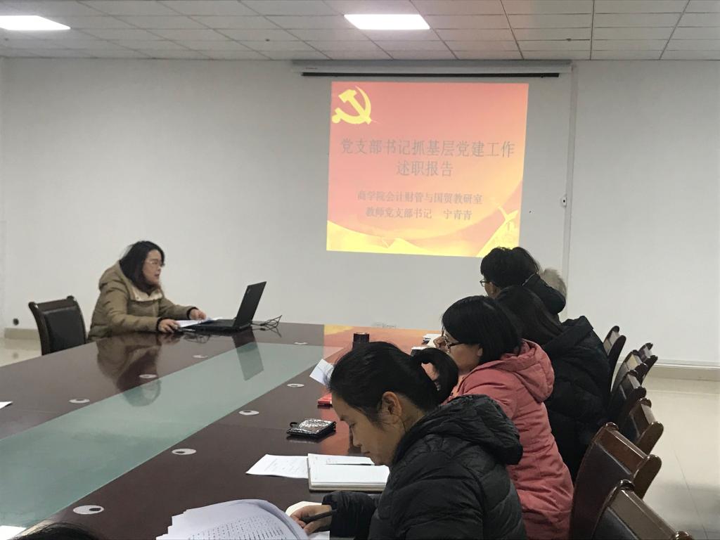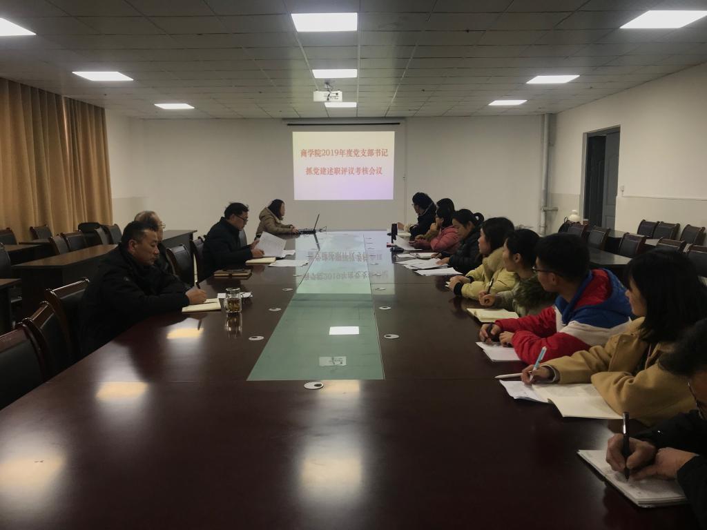 根据校党委《关于开展2019年度基层党支部书记抓党建述职评议考核工作的通知》精神,1月2日下午,商学院党总支在实训楼B513会议室召开2019年度党支部书记抓基层党建述职评议考核会。商学院总支委员、支部书记、支部委员和师生党员代表参加了此次会议。会议由党总支书记岳尧主持。