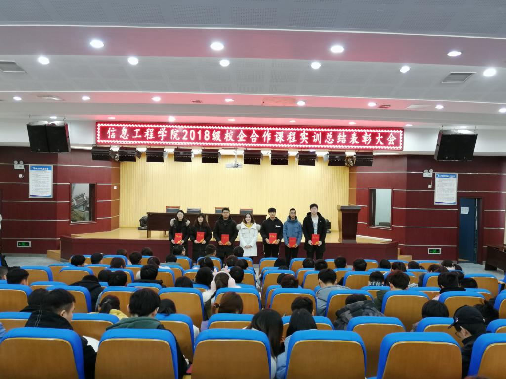 2020年1月2日,信息工程学院在东校区工科楼招聘大厅举办了“信息工程学院2018级校企合作课程实训总结表彰大会”。信息工程学院实习实训中心主任潘正高、王柯柯老师、实训指导教师以及2018级本科生参加了大会,会议由潘正高主任主持。