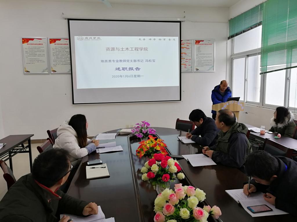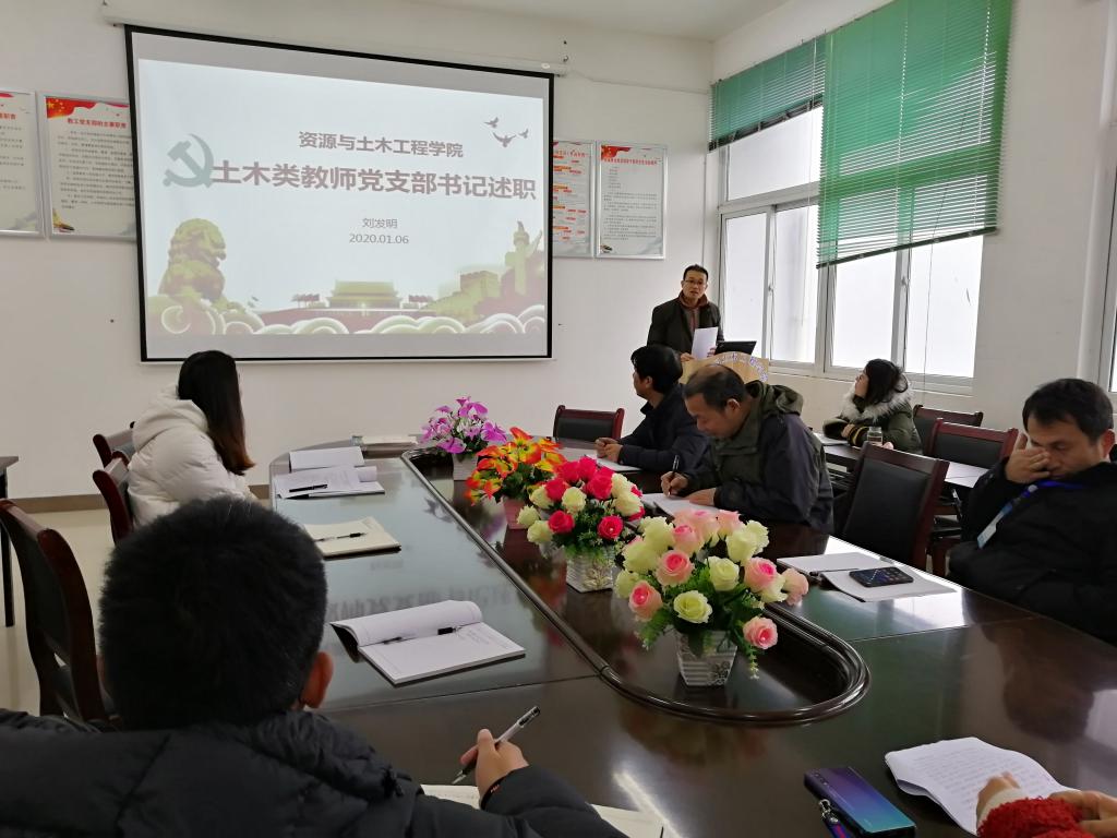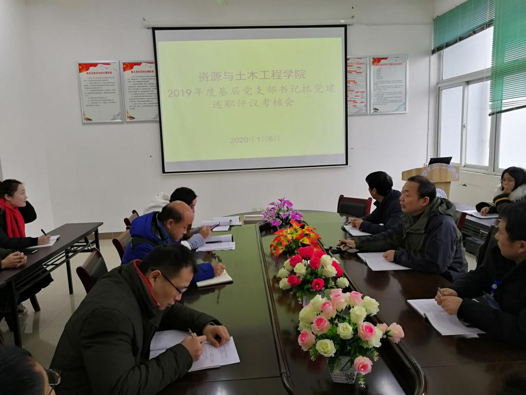 为进一步提升基层党建工作质量,推动全面从严治党向基层党组织延伸,促进基层党支部书记履行党建工作职责,落实支部党建工作主体责任和支部书记第一责任人职责,按照学校党委组织部《关于开展2019年度基层党支部书记抓党建述职评议考核工作的通知》(组字〔2019〕79号)的要求,2020年1月6日上午,资源学院党总支在工A314会议室召开2019年度基层党支部书记抓党建述职评议考核会。学院党总支委员、师生党支部书记、党支部委员及师生代表参加会议,党总支书记刘领主持会议。