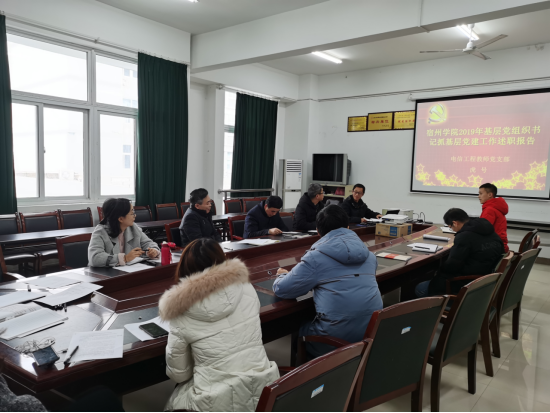 为进一步提升机电学院基层党建工作质量,推动全面从严治党向基层党组织延伸,促进各基层党支部书记履行党建工作职责。2020年1月3日下午,机电学院在工科C楼三楼大会议室召开2019年基层党支部书记抓党建工作述职报告会,机电学院党总支委员、党支部书记、师生党员代表参加会议,会议由机电学院党总支书记刘超主持。