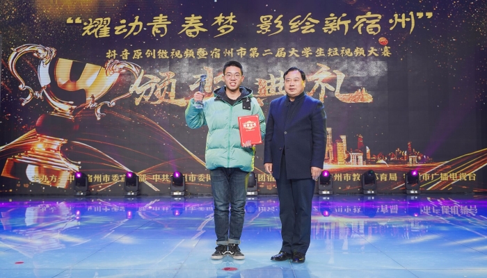 为培育和践行社会主义核心价值观,增强广大青年的创新、创作能力。12月30日下午,“耀动青春梦 影绘新宿州”抖音原创微视频暨宿州市第二届大学生短视频大赛颁奖典礼在市广播电视台演播大厅举行,管理学院学子周志鹏、孙轮曦分别凭借原创作品《因为有你》和《阿婆家的小院》喜获大赛一等奖及优秀奖。