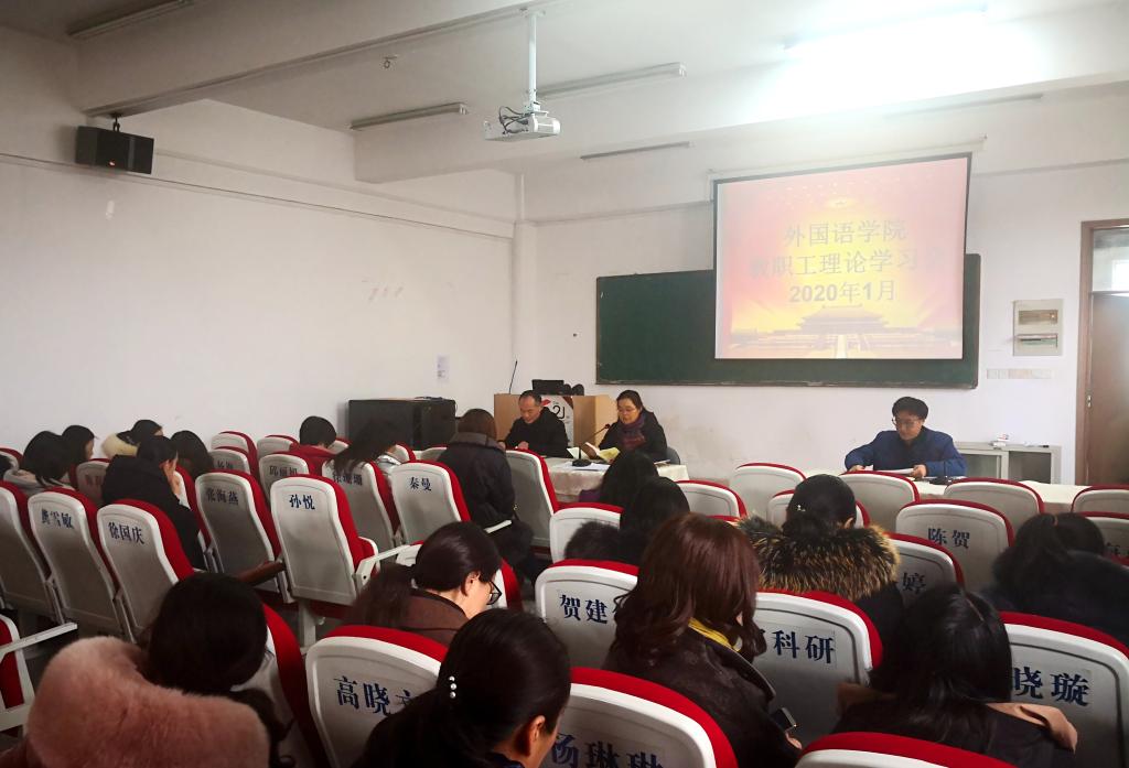 1月9日下午,外国语学院党总支在学院会议室召开了教职工理论学习会,学院党总支书记王华、院长李加强、党总支副书记、副院长郝景东以及全员教职工参加会议。会议由党总支书记书记王华主持。