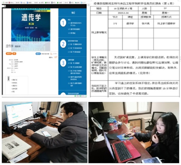 生物技术教研室负责生物技术专业的7个班级的23门理论课。老师们按照教学大纲的要求认真准备电子版教材、教案、课件、网络教学视频、作业、习题等,并把这些教学材料上传到学习通上。老师们的辛勤付出为网络教学奠定基础。2月24日,开学第一天,老师们精神抖擞的上好自己的开学第一课,给学生进行课程介绍,从课程性质到教学目标要求再到考核要求等,让学生对这门课的学习有了目标。